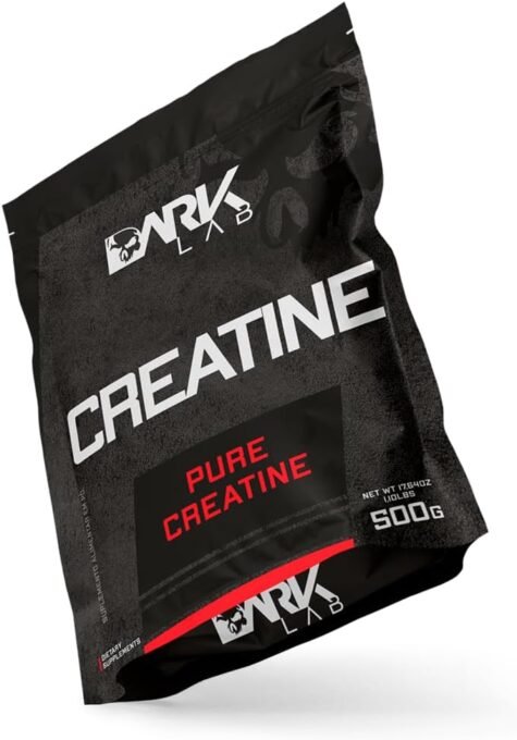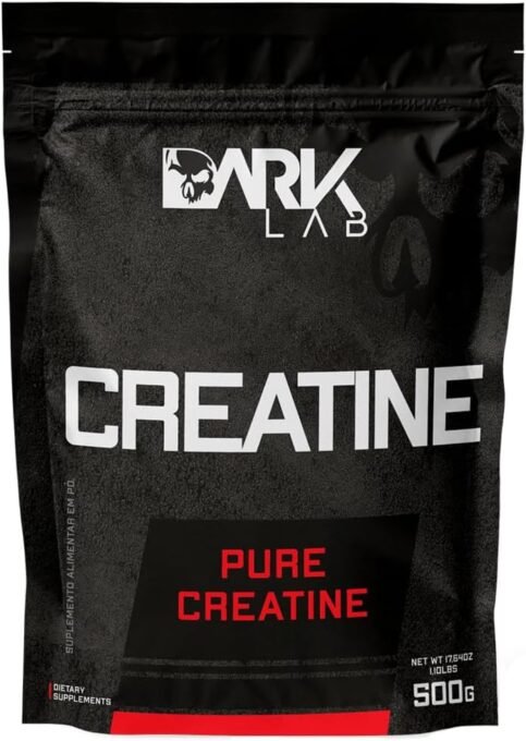 Creatina Pura Dark Lab 500g: monohidratada 100% pura, sem sabor e fácil de misturar, ideal para aumentar força, desempenho e massa muscular. Excelente custo-benefício e muitas doses por embalagem.